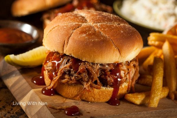 As we were seated, each family member talked about what they wanted to eat. Does your family do that? Share ideas about food choices? As they talked, I suddenly decided to skip the boring potato and applesauce and instead, go for a pulled pork barbecue sandwich and French fries. My mouth watered and I smiled as I thought about it! I enjoyed the anticipation - imagining the tender pork and the spicy barbecue sauce. The crisp, hot fries with ketchup. Yum!